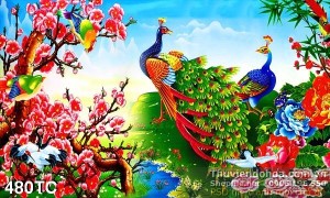 Tranh chim công khu vườn rực rỡ