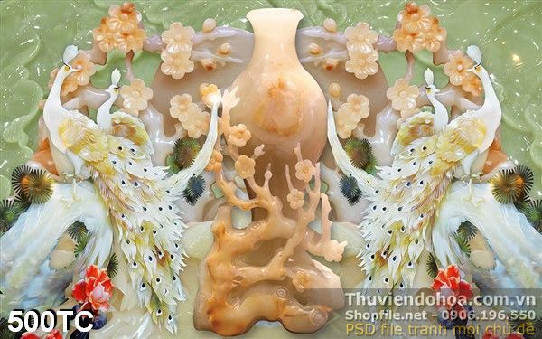 Tranh chim công bình hoa 3d giả ngọc in uv