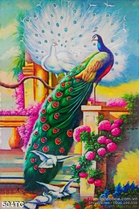 Tranh chim công vector màu trắng 3d