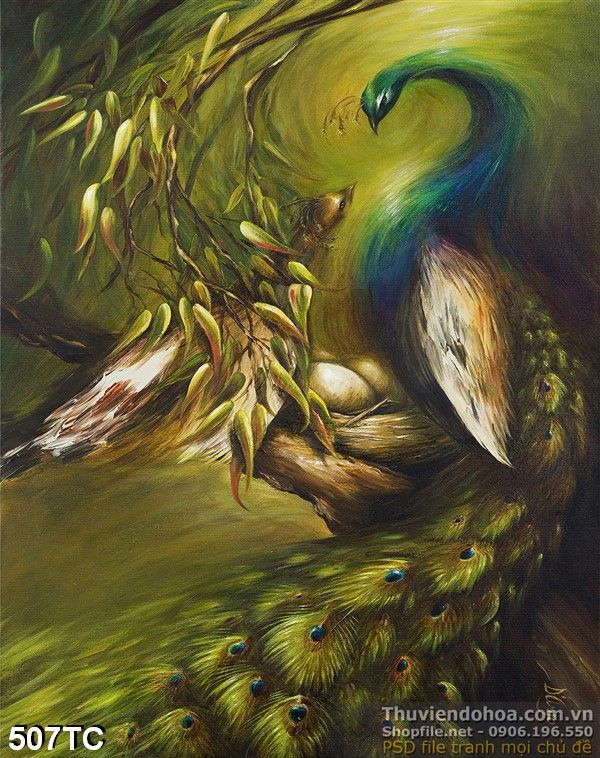 Tranh chim công sơn dầu nghệ thuật
