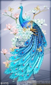 Tranh chim công màu xanh lam đẹp mắt psd