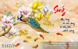 Tranh chim công chữ sống và đán cá chép 3d đẹp