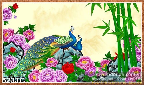 Tranh chim công và cây tre in psd