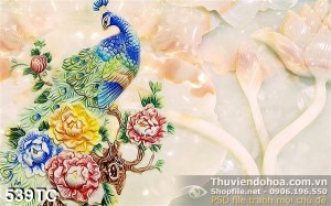 Tranh chim công 3d giả ngọc psd đẹp ấn tượng