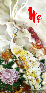 Tranh chim công mẹ và hoa mẫu đơn đẹp ấn tượng