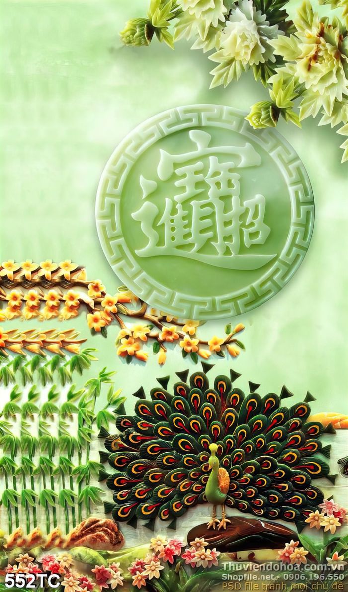 Tranh chim công 3d giả ngọc xòe đuôi ấn tượng