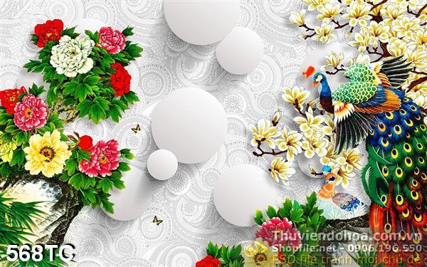 Tranh chim công và những hòn đá màu trắng