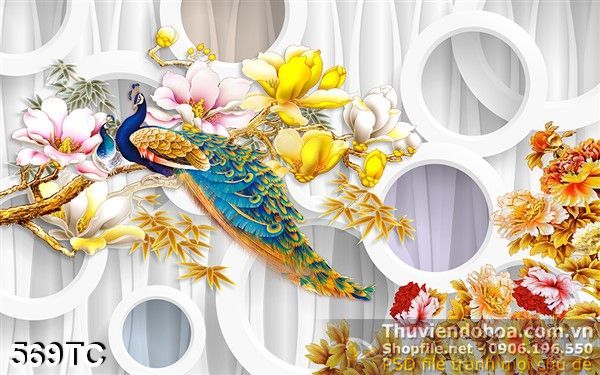 Tranh chim công và cành hoa 3d đẹp