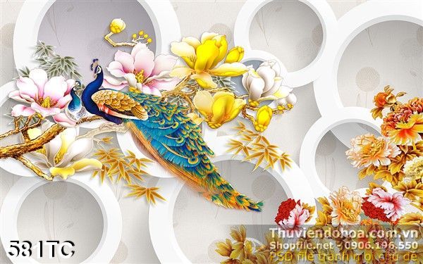 Tranh chim công và những vòng tròn trắng đẹp 3d