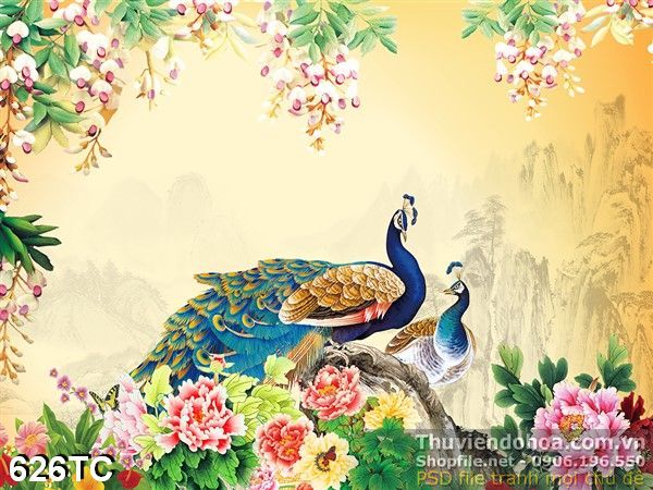 Tranh chim công vẽ tay sơn dầu ấn tượng