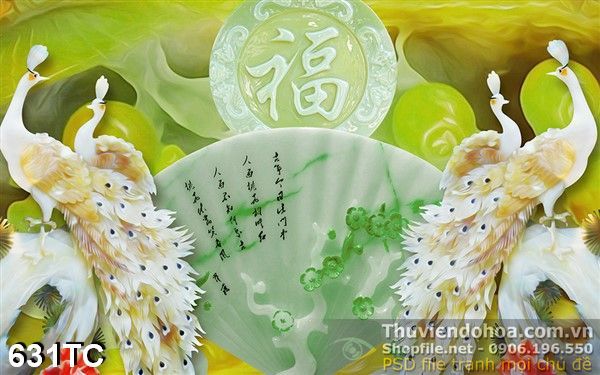 Tranh chim công giả ngọc và cái quạt