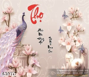Tranh chim công chữ thọ thư pháp