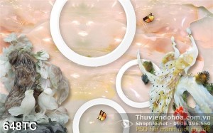 Tranh chim công 3d và vòng tròn nhỏ màu trắng