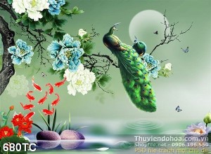Tranh chim công đậu cành cây lúc đên khuya