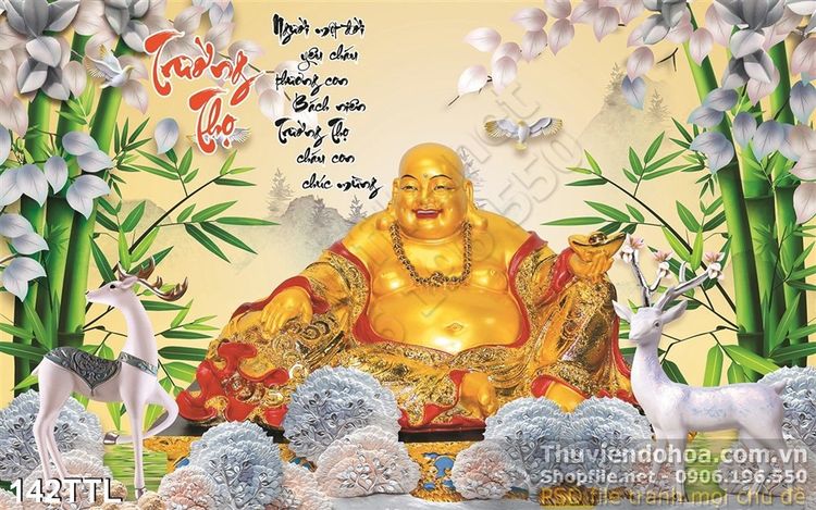 Tranh in 3D Phật thư pháp Trường Thọ
