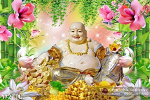 Tranh psd Phật Di Lặc kim tiền nghệ thuật