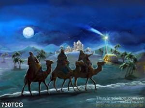 Tranh công giáo sứ giả đi theo ngôi sao sáng in uv đẹp