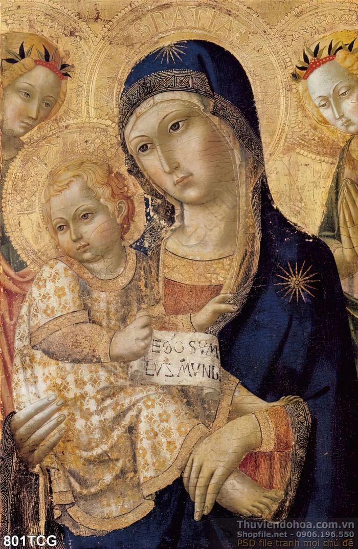 Tranh canvas cổ Mẹ Maria và Chúa hài nhi