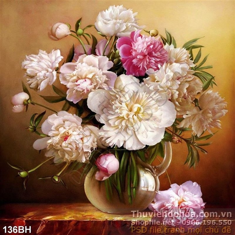 Tranh bình hoa hồng sơn dầu