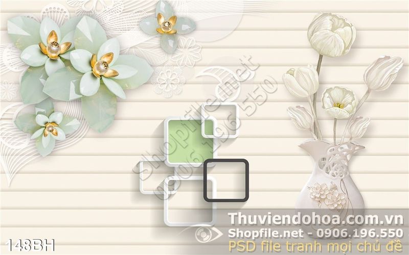 Tranh bình hoa nghệ thuật 3d ô vuông