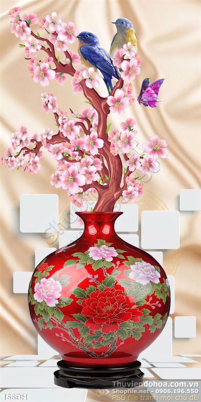 Tranh bình hoa nghệ thuật cổ và hoa đào
