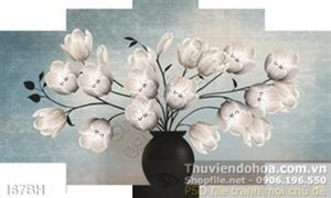 Tranh chậu hoa bộ 3 tấm màu trắng đẹp in uv