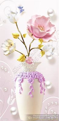 Tranh chậu hoa lụa 3d khổ dọc in uv đẹp