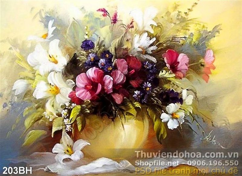 Tranh bình hoa sơn dầu in gạch men 3d ấn tượng