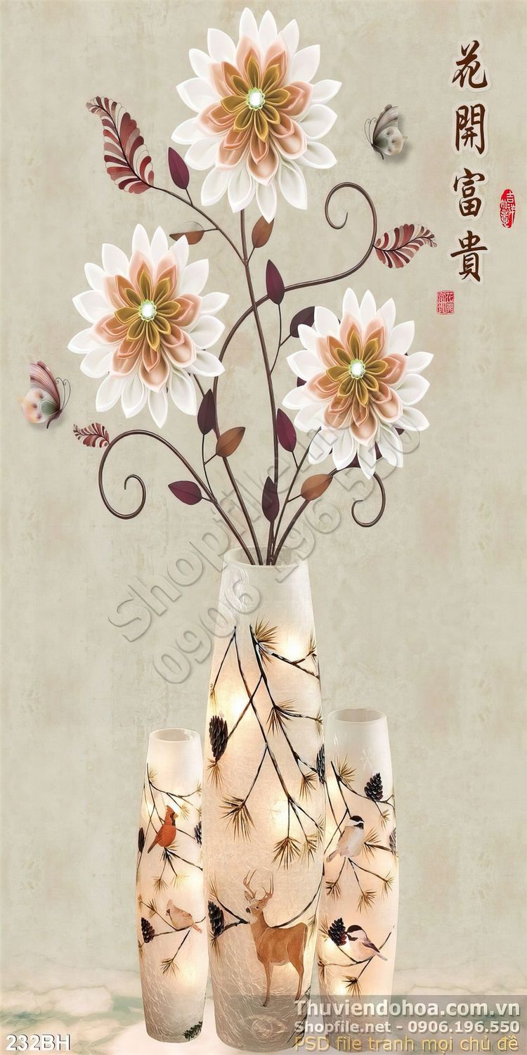 Tranh bình hoa nghệ thuật con nai đẹp