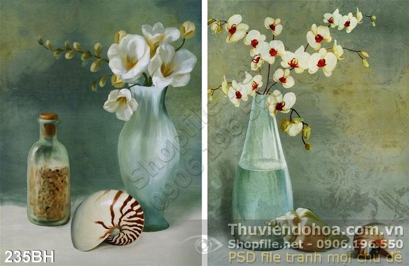 Tranh chậu hoa sơn dầu đẹp ấn tượng