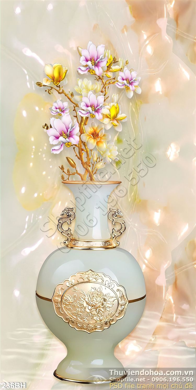 Tranh bình hoa giả ngọc decor wall psd