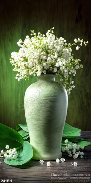 Tranh chậu hoa màu xanh