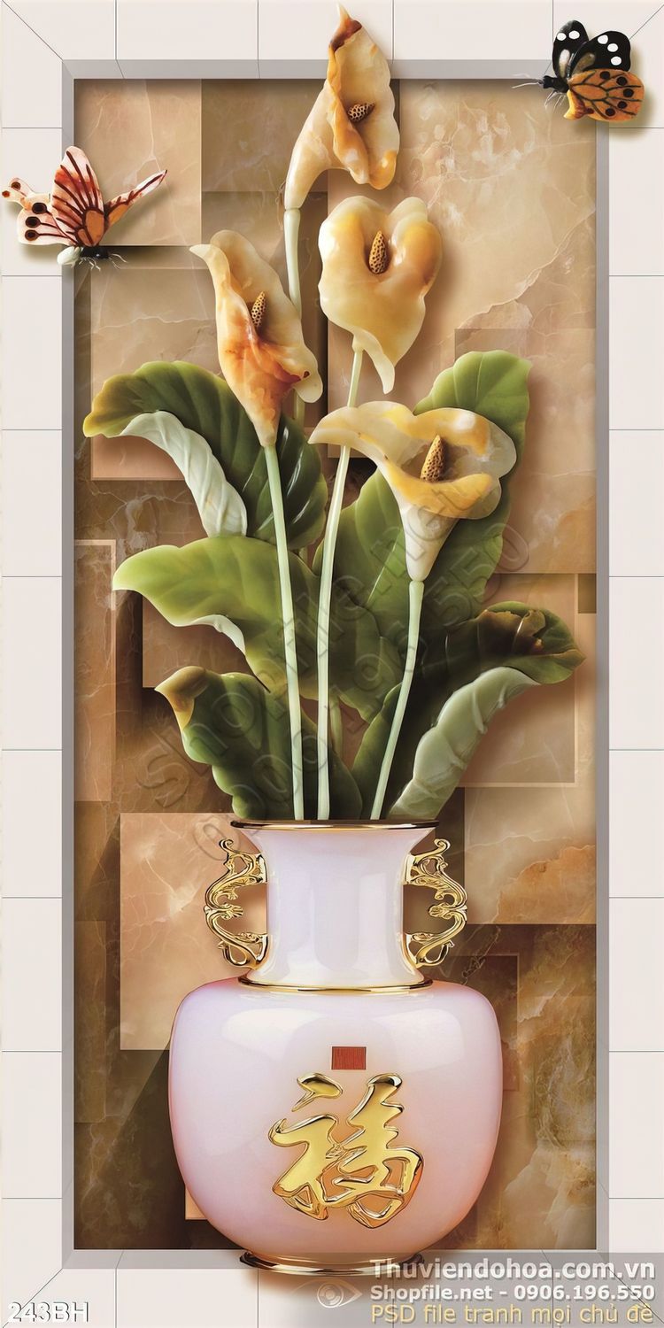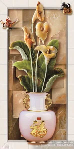 Tranh bình hoa giả ngọc ấn tượng in gạch men