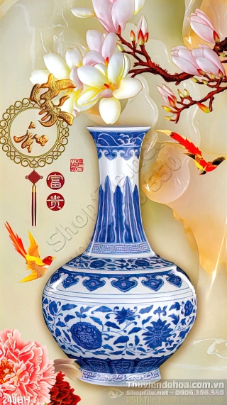 Tranh bình hoa gốm sứ cổ giả ngọc