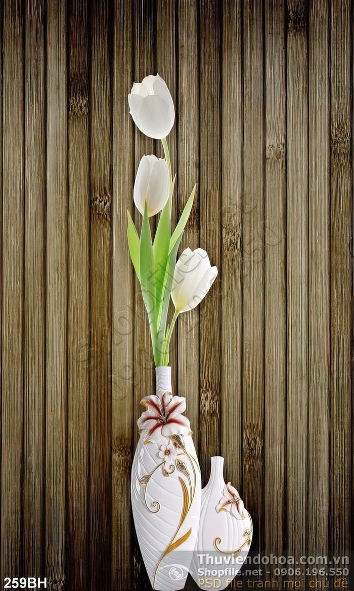 Tranh bình hoa gốm trắng nghệ thuật psd