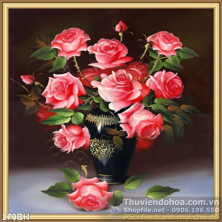 Tranh bình hoa hoa hồng sơn dầu