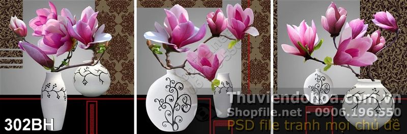 Tranh bình hoa psd treo tường decor wall