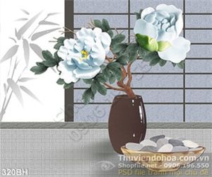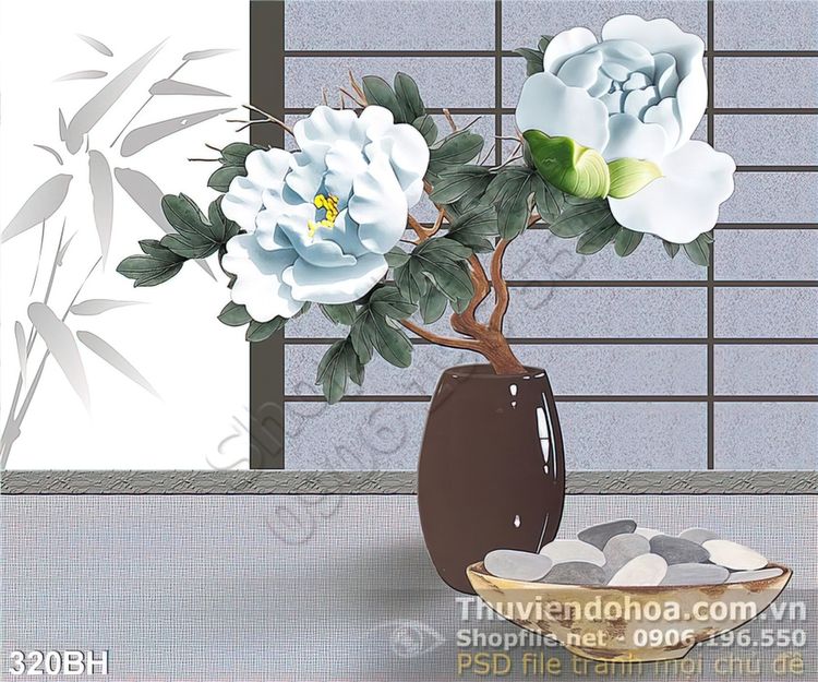 Tranh bình hoa nghệ thuật giả ngọc hoa mẫu đơn psd