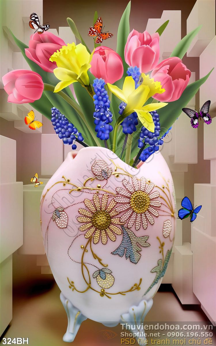 Tranh bình hoa nghệ thuật vẽ ấn tượng hoa tulip
