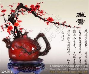 Tranh chậu hoa cổ và cành hoa đào nghệ thuật
