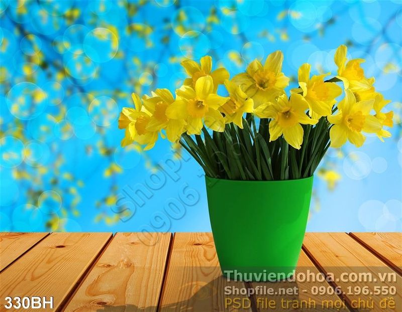 Tranh bình hoa trang trí phòng khách psd