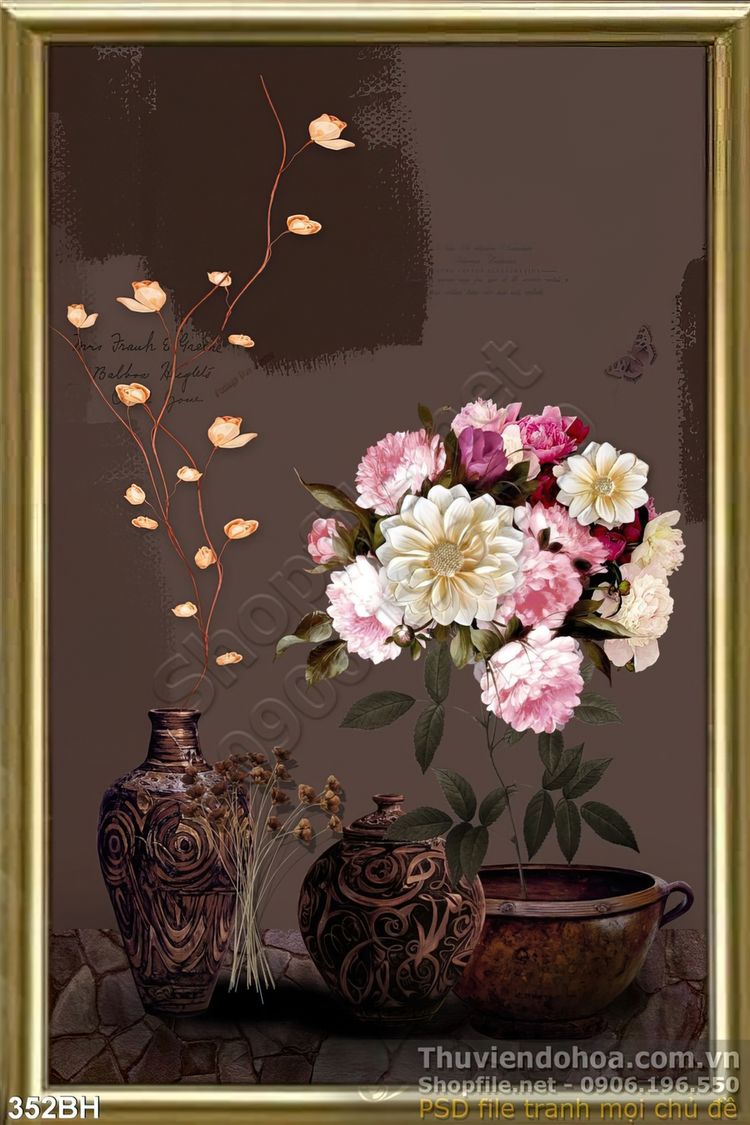 Tranh bình hoa sơn dầu mẫu đơn đẹp ấn tượng