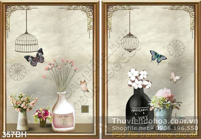 Tranh bình hoa hiện đại con bướm