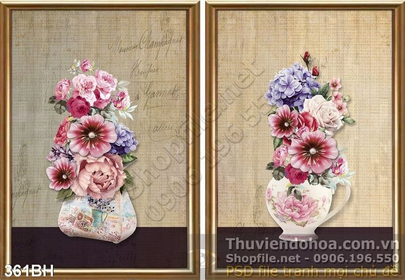 Tranh bình hoa sơn dầu bộ 2 tấm
