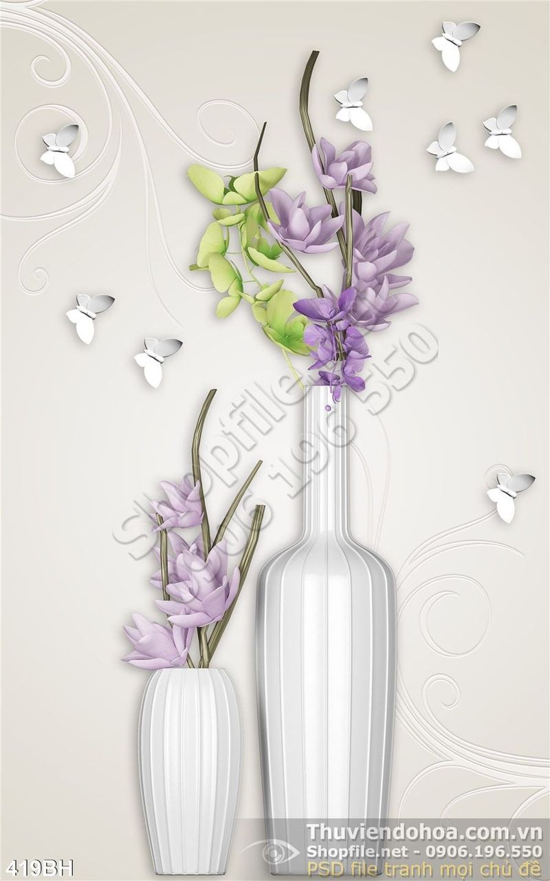 Tranh bình hoa hiện đại hoa tím