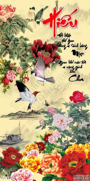 Tranh thư pháp chữ hiếu psd