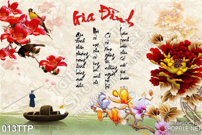 Tranh thư pháp thác về gia đình psd