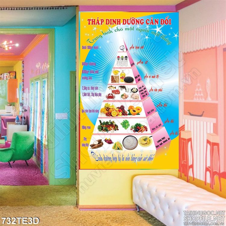 Tranh về tháp dinh dưỡng cân đối cho học sinh