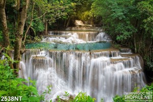 Tranh con thác dài trên đỉnh núi 3d