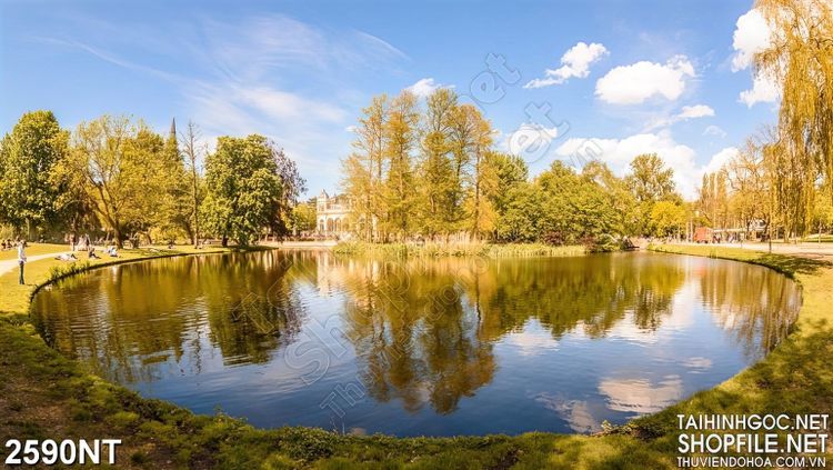 Tranh hàng cây in mặt hồ in uv